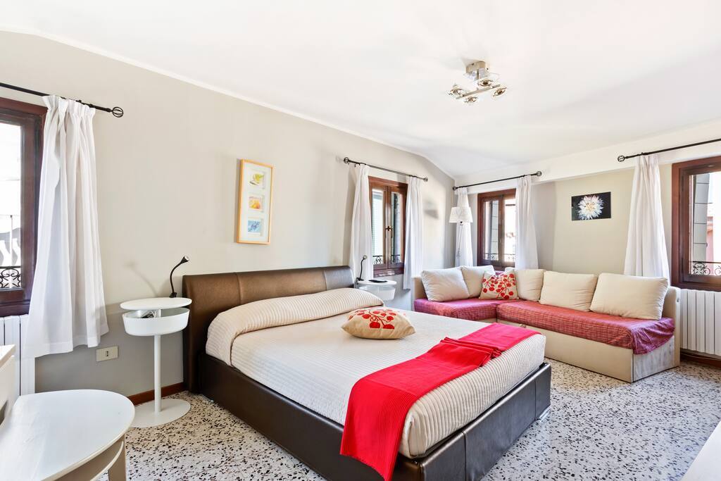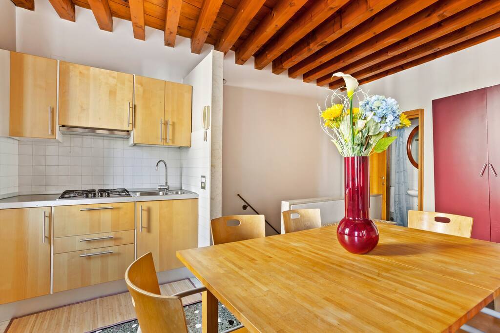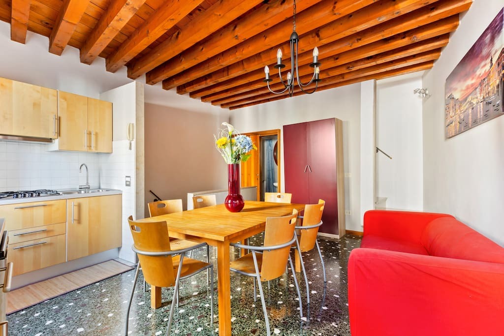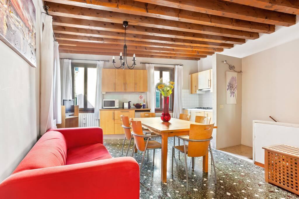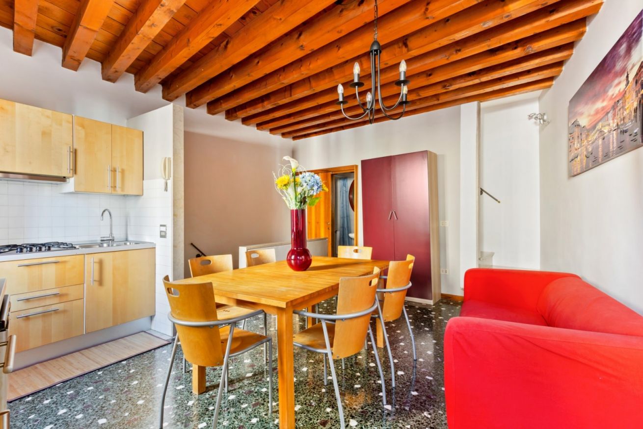 This 2nd floor 3 bedroom apartment on 2 levels of a building without an elevator is located in in the heart of the Castello district, walking distance to all essential services including pharmacies, minimarkets, cafes, restaurants, and vaporetto stops. The apartment features air conditioning, wardrobes, a fully equipped kitchenette with dining table, intercom opening with code, and comfortably accommodates up to 7 guests at a time. TV, wifi, and utilities are also included.