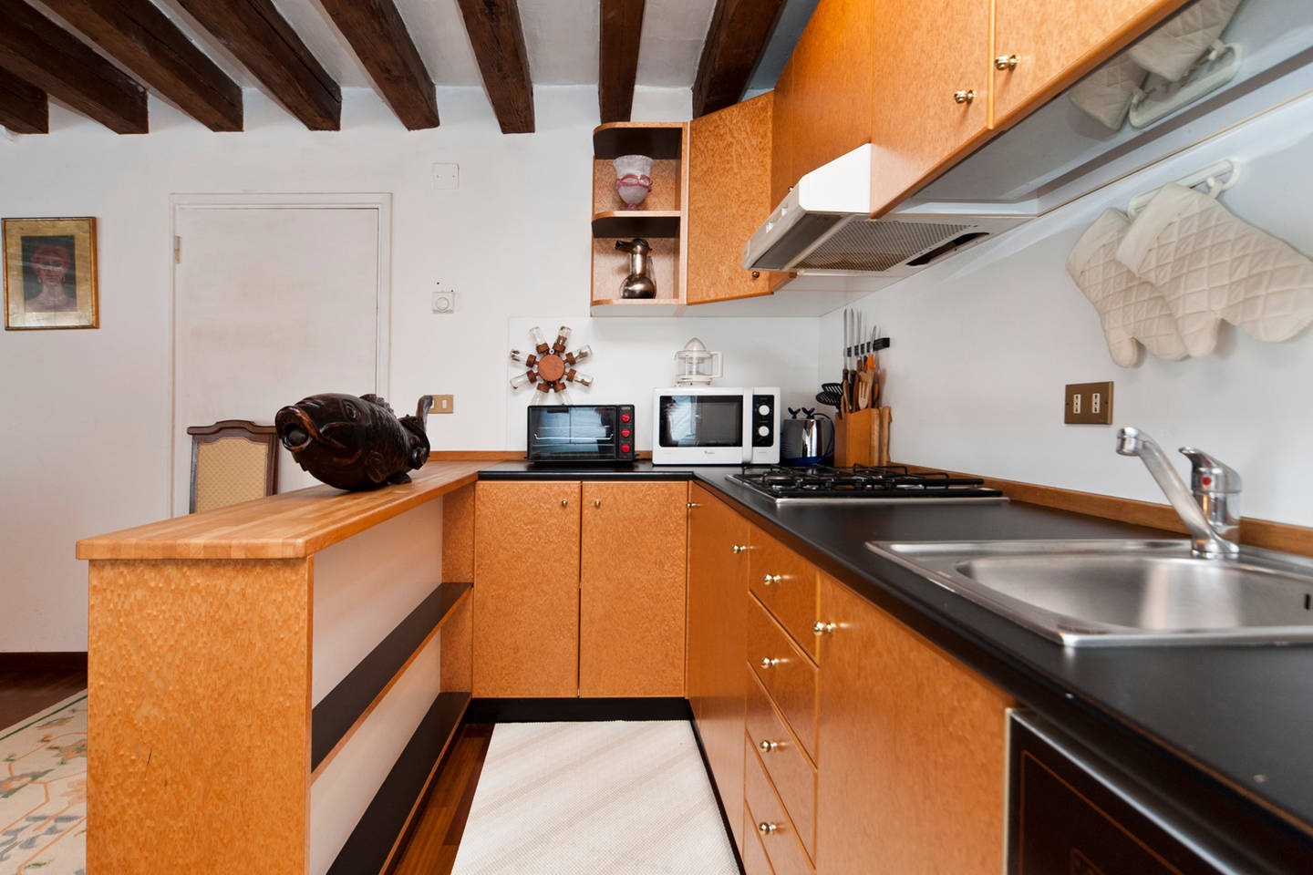 These apartments are located on the 4th floor of a renovated building without an elevator in the heart of Venice, walking distance to major landmarks, transportation around the city, shops, restaurants, and all essential services. Each unit features a fully equipped kitchen, air conditioning, washing machine, and can comfortably accommodate 2-6 guests. The larger apartment is on 2 levels, and includes a dishwasher, dining area, and terrace. TV, wifi, and utilities are also included in both units.